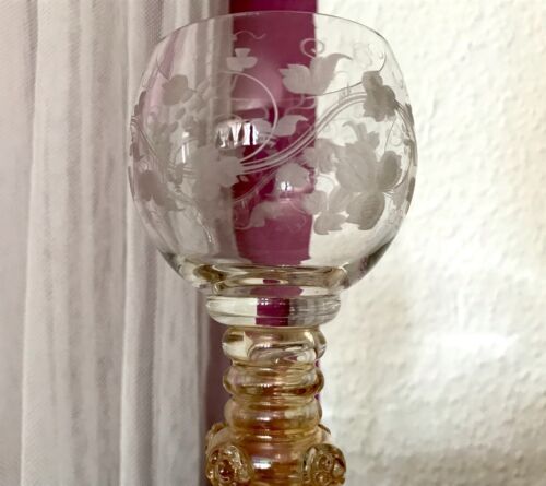 Antik Römer Glas Theresienthal? gelüstert Balusterschaft Hohlschaft 4 Nuppen