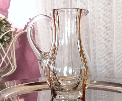 Antik Regenhütte Art Déco Kanne Karaffe Kännchen bernsteingelb Rippen Eichstrich