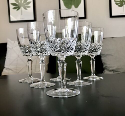 Alt Vintage 60er 6 Weingläser Gläser Kristallglas Muster String-Ära