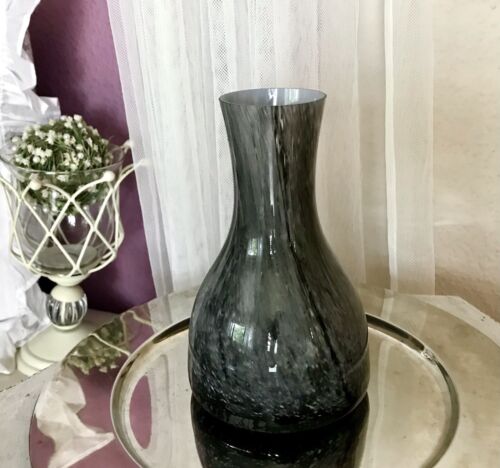 alt Vintage 60er Vase Glasvase Glas mundgeblasen Grau