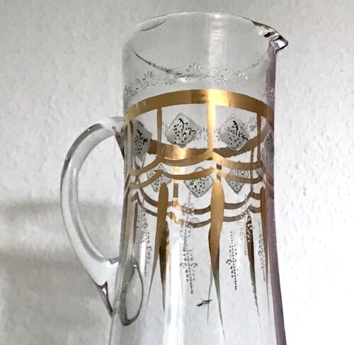 Antik ~1850-70 Krug Kanne Emaile Goldstaffage scharfer Abriss