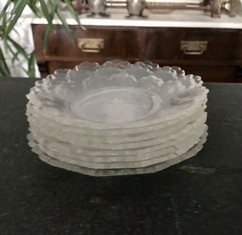 Antik ~1850-70 8 Gebäck Konfekt Teller Glas kantig Glas Kristallglas geschnitten