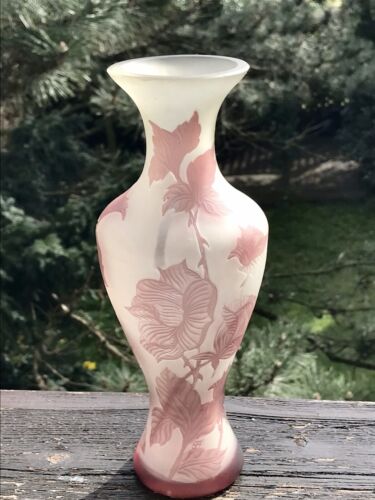 Antik Wundervoll! Jugendstil Vase Glasvase Glas Cameo Rosen geätzt Signiert