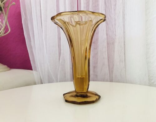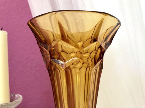 Art Déco 1 Vase Glasvase Pressglas Antik Bernstein Gelb Amber Glas
