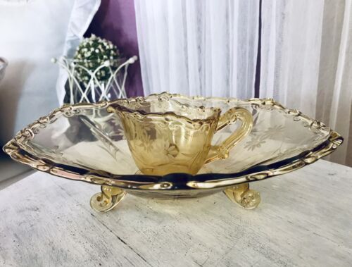 Art Déco 1938 Fenne Pressglas Set Schale & Sahnegießer Glas Bernstein gelb amber