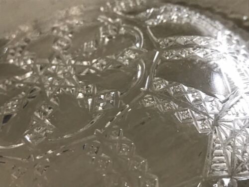 Art Déco 14 cm Pressglas Teller Antik Glas Flechtmuster Rosette im Spiegel