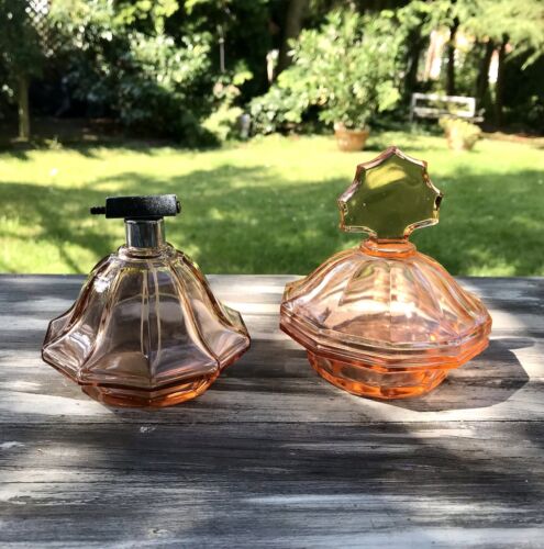 Art Déco Frisiertisch Garnitur Kammschale Dose Flacon Rosalin Pressglas Rosa