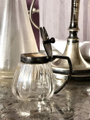 Art Déco Deckelgefäß versilbert Glasdose Deckel Senftopf Gewürzständer ? Schön!