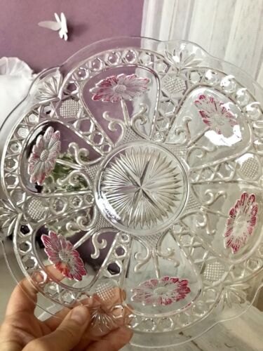 Art Déco 1931 Pressglas Teller Antik Glas Schale Marquerite Brockwitz kaltbemalt
