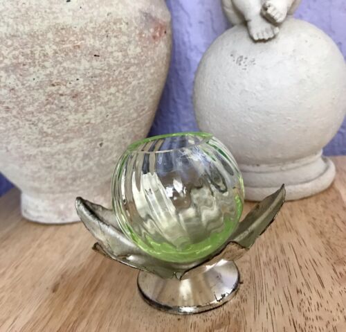Art Déco Antik Glasvase Pokalvase Vase Montur versilbert Uranglas Kugel gerippt