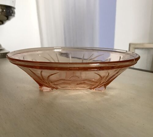 Art Déco 1938 Schale Pressglas Antik Glasschale Anbietschale Rosalin rosa rund