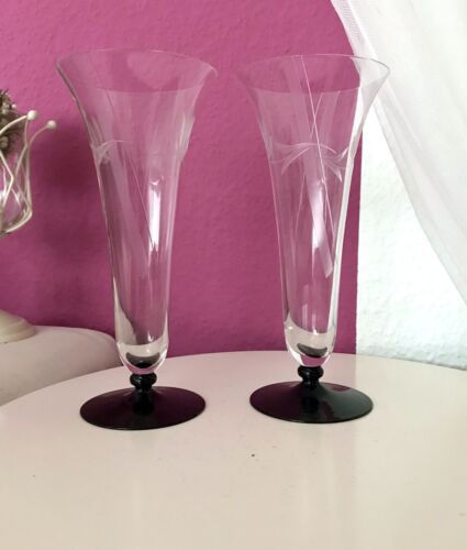 Art Déco Antik 2 Glasvasen Pokalvasen geschliffen Vase Schliff schwarzer Fuß