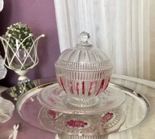 Art Déco Dose & 1931 Pressglas Antik Glas Marquerite Brockwitz Teller kaltbemalt