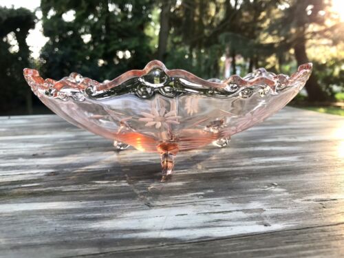 Art Déco Fenne Pressglas Schale Glasschale 3 füssig Glas geschliffen Rosalin