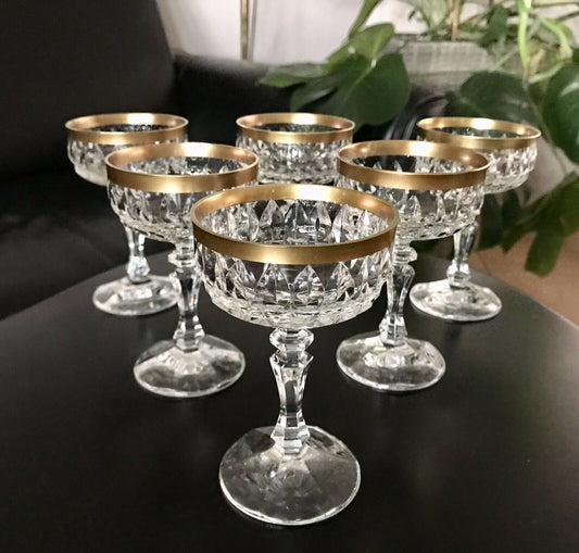 Vintage 12 EDEL Sekt Champagnerschalen Gläser Kristallglas Sektschalen Goldrand