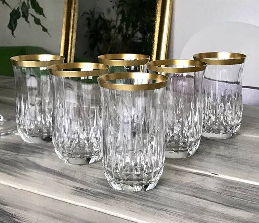 Vintage 12 EDEL Wassergläser Trinkbecher Gläser Kristallglas Goldrand