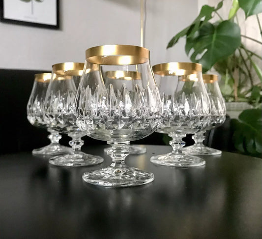 Vintage 12 EDEL Cognacschwenker Cognac Gläser Kristallglas Goldrand