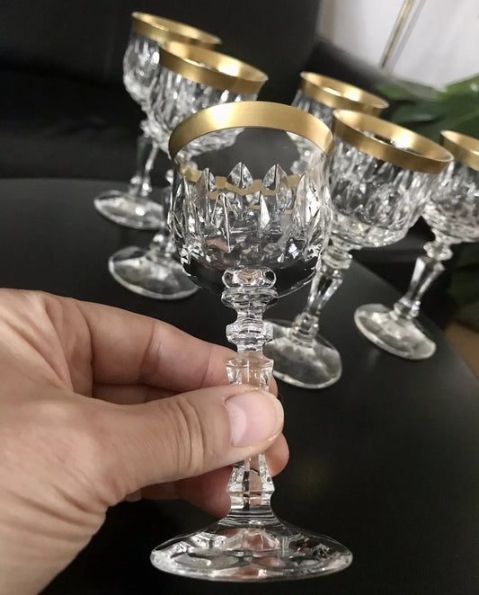 Vintage 12 EDEL Likörgläser Kristallglas Schnapsgläser Goldrand