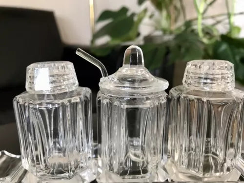 Vintage 60er Kristallglas Salz&Pfeffer Menage Gewürzständer Saliere 5T.