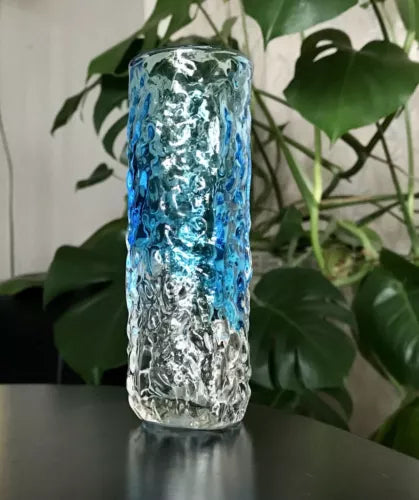 Vintage Geoffrey Baxter Whitefriars ? Designer Glasvase Vase Glas türkis Blau