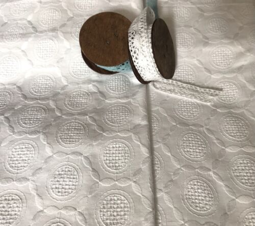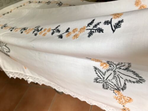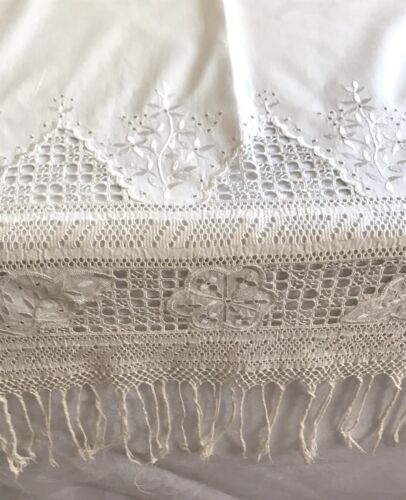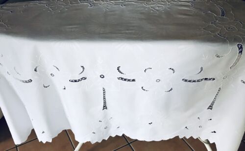 Antik Tischdecke 130 x 165 Stickerei weiß Baumwolle Spitze elegant