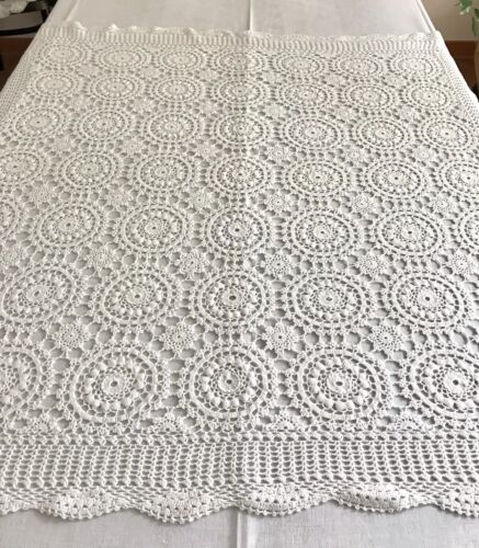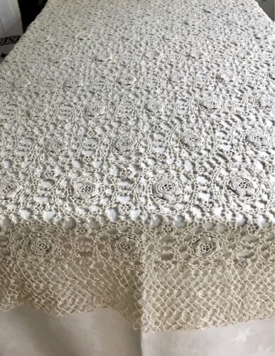 Antik Häkelspitze Tischdecke Rund 180 cm gehäkelt Weiß Baumwolle Spitze Landhaus
