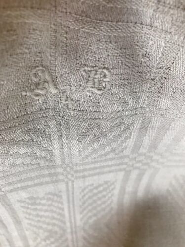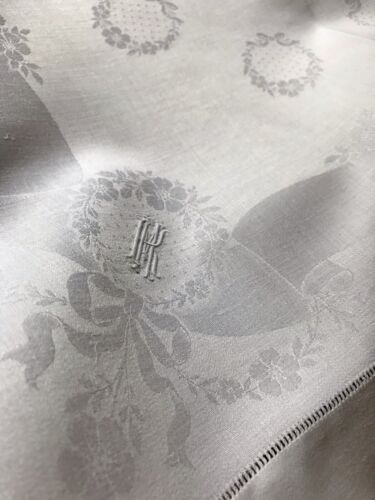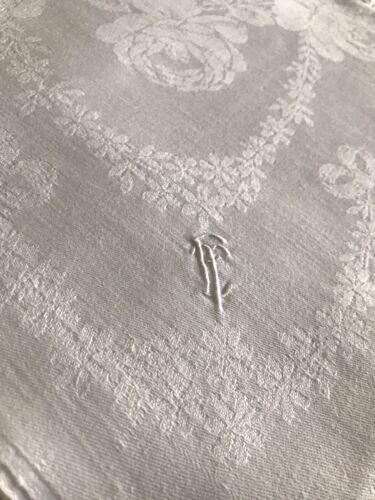 Antik Edel Tischdecke Tafeltuch 160 x 110 weiß Seidendamast Leinen Monogramm AB