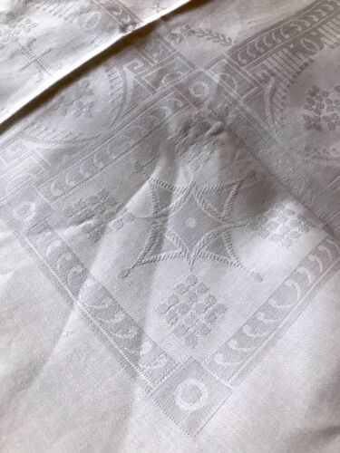 Antik Tischdecke Hotel Monopol Tafeltuch 196x127 weiß Damast Leinen Sterne