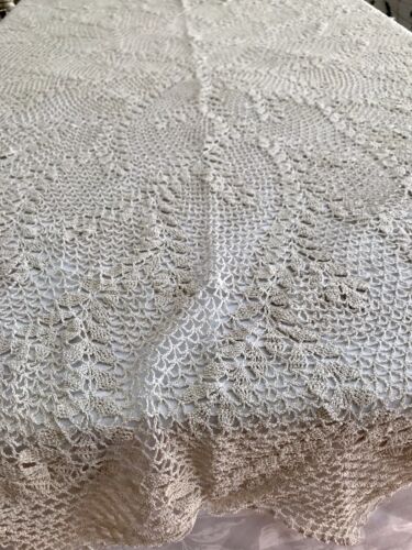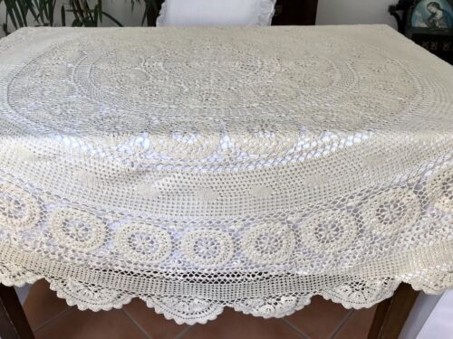 Antik Häkelspitze Tischdecke Rund ~140 cm gehäkelt Beige Baumwolle Spitze