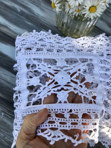 Antik Häkelspitze Tischdecke 90 x 90 gehäkelt weiß Baumwolle Spitze Landhaus