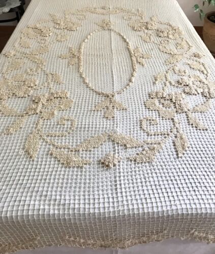 Antik Filetspitze Bettüberwurf Tischdecke 300x192 Beige Baumwolle Erscheinung