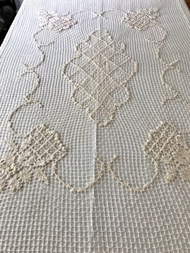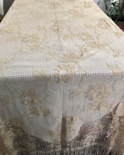 Antik alt Spitze hell beige Tischdecke 138 cm x 108 cm Baumwolle Filetspitze