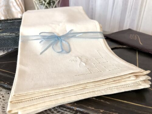 Antik Set 6x Taschentuch Servietten Jugendstil Stickerei Lochsaum wohl Leinen