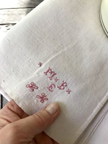 Antik Bauernleinen Leinen handgewebt Laken 155x102 Monogramm IHM MB Tischdecke?