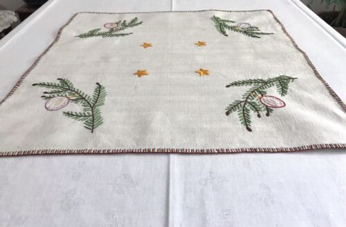Antik Tischdecke 50x50 Weihnachten Deckchen Stickerei Leinen SCHÖN