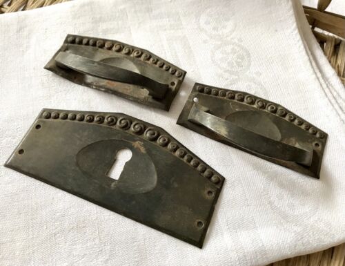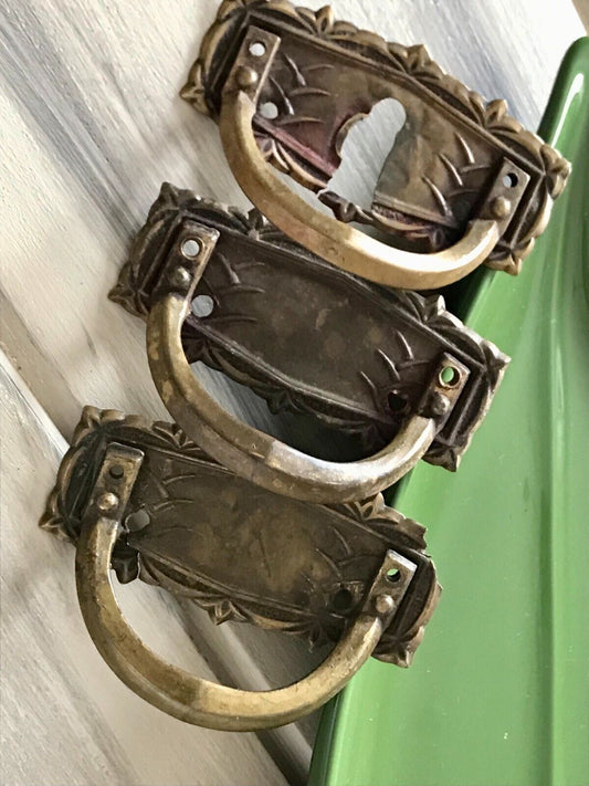 Antik Art Déco Original 3 Kommodengriffe Möbel Beschläge Patina