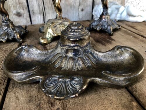 Antik Tintenfass Schreibtischgarnitur Bronze Jugendstil um 1890