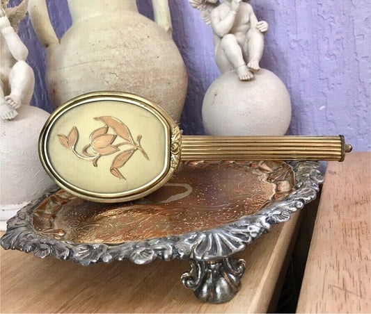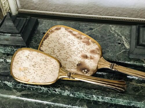 Alt 50er Regency Vintage Frisierset Haarbürste Handspiegel Messing gold schön!