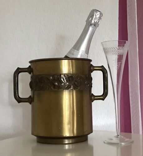 Antik Jugendstil Art Déco Messing Übertopf Vase Sekteimer Rosenrelief