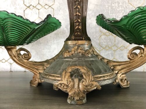 Antik Schale Jugendstil Tafelaufsatz Bronze-Optik grün lüstriert Glas Lötz ?