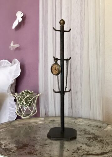 Antik großer Metall Taschenuhr Halter Ständer Eisen und Messing