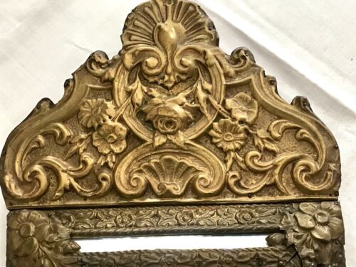 Antik wundervoll Spiegel Kristallglas facettiert Holz Messingrelief beschlagen