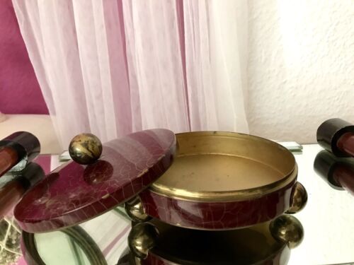 Antik Art Déco Bauhaus Messing Reisslack Optik Schatulle Dose weinrot gold