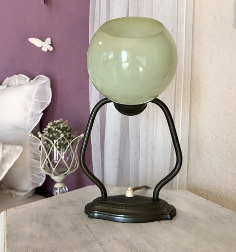 Antik Art Déco Tischleuchte Lampe Leuchte Messing grüner Schirm