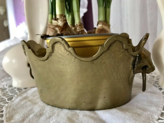 Alte antike Jardiniere Schale Dose Pflanzschale Messing