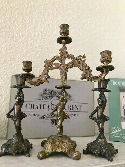 Antik Messing Bronze? Kerzenständer Kerzenhalter Putto Kandelaber feuervergoldet