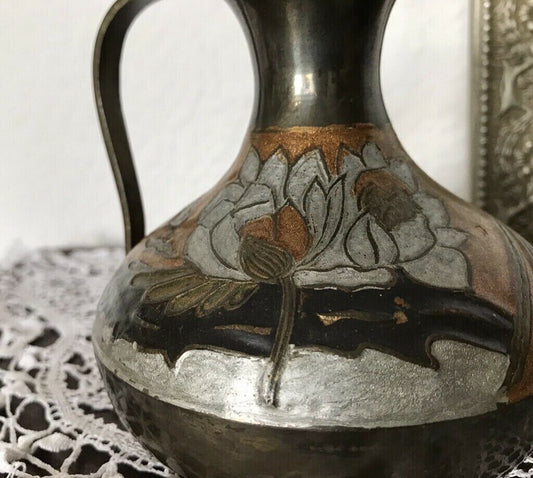 Alt Vintage Vase Krug Bronze Messing Emaille Cloisonne