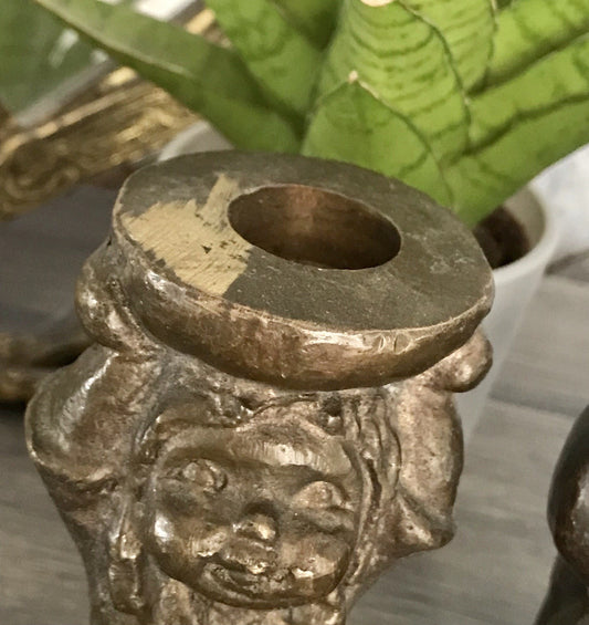 Vintage Bronze Leuchter Kerzenständer Figur Kind Skulptur Limpke Mädchen Schale
