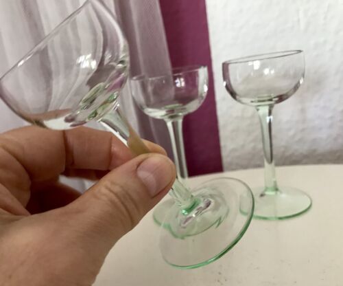 Antik 3x Jugendstil Art Déco Glas Likörgläser Stiel aus Uranglas