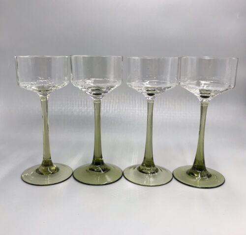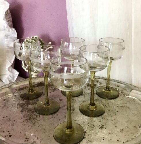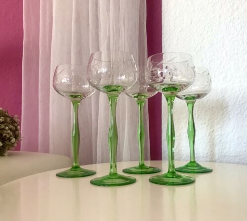 Antik 5x Jugendstil Art Déco Weinglas grüner Stängelstiel Weingläser Schliff